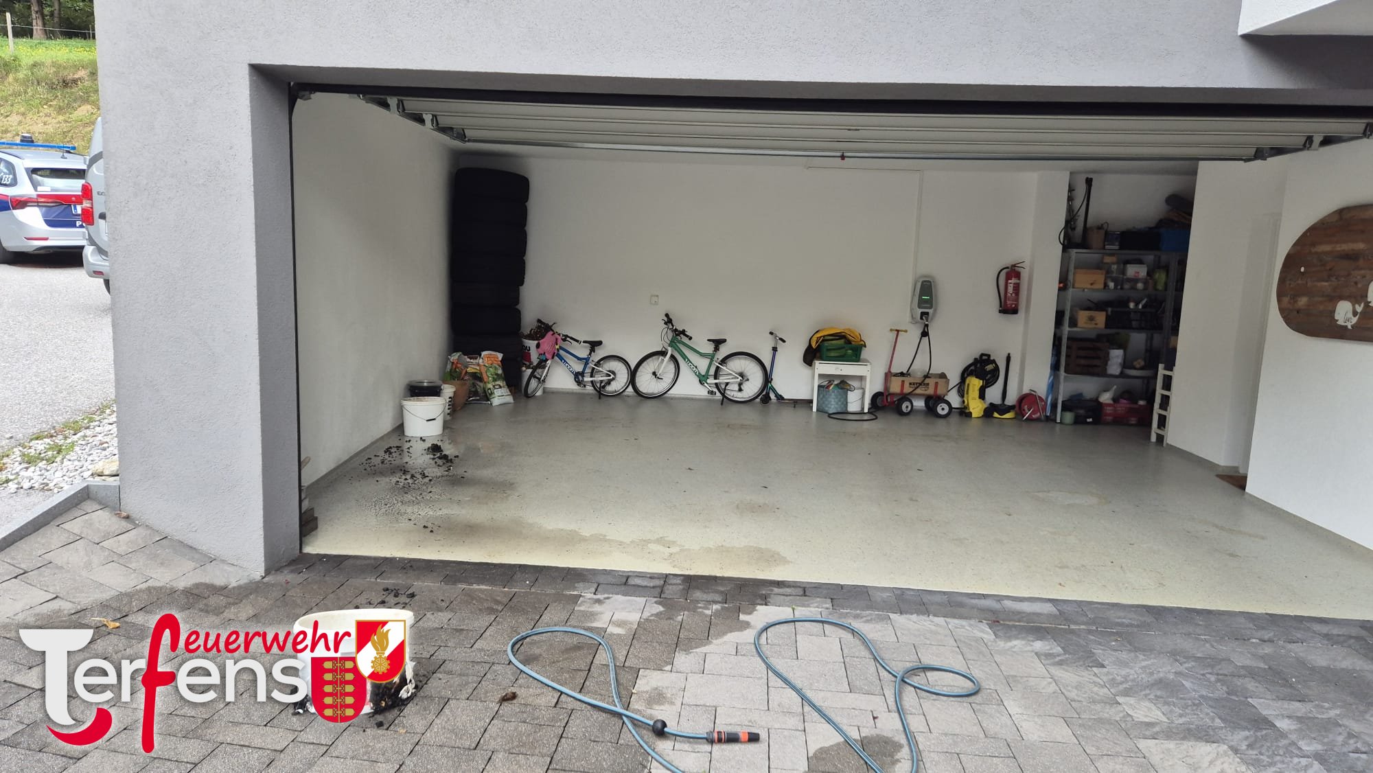 Bei einem Sirenenalarm am Montag den 22.9.2025 zu Mittag wurde zuerst ein Elektrofahrzeugbrand angenommen.
